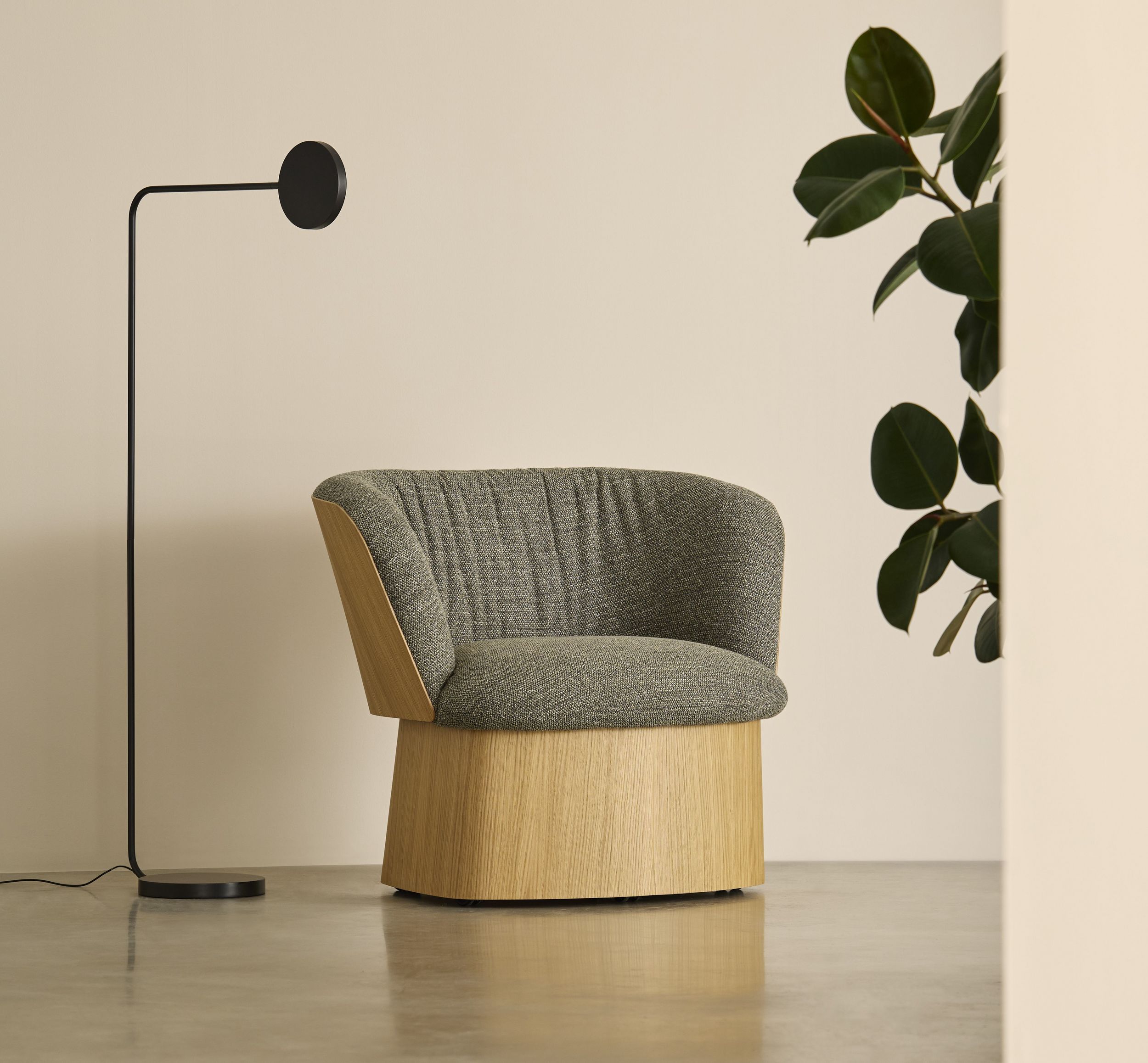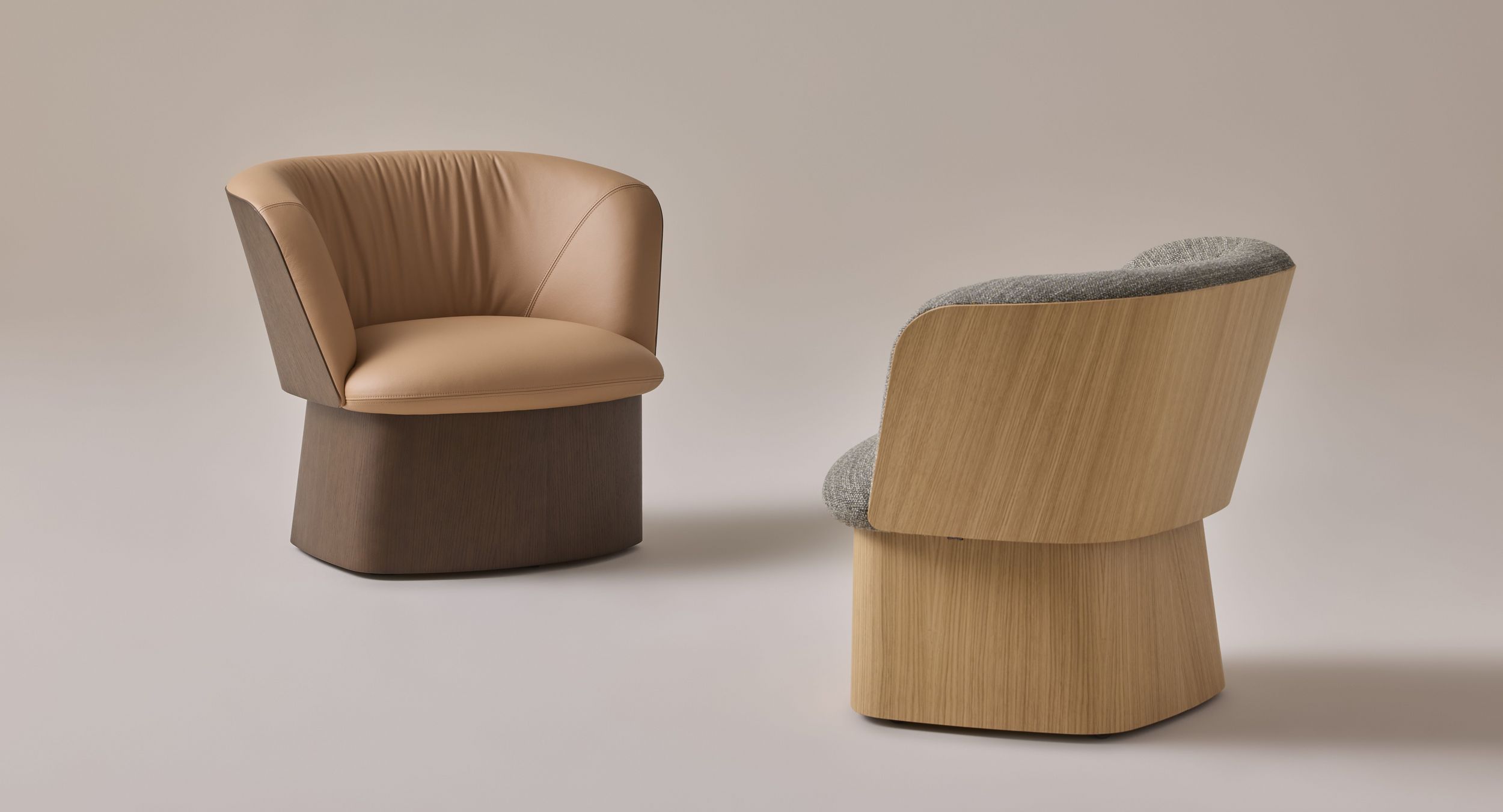 Manto represents the perfect union of strength and elegance: the solid, monolithic wooden base confidently grounds the chair while its inviting backrest and softly upholstered seat graciously welcome an opportunity to linger.