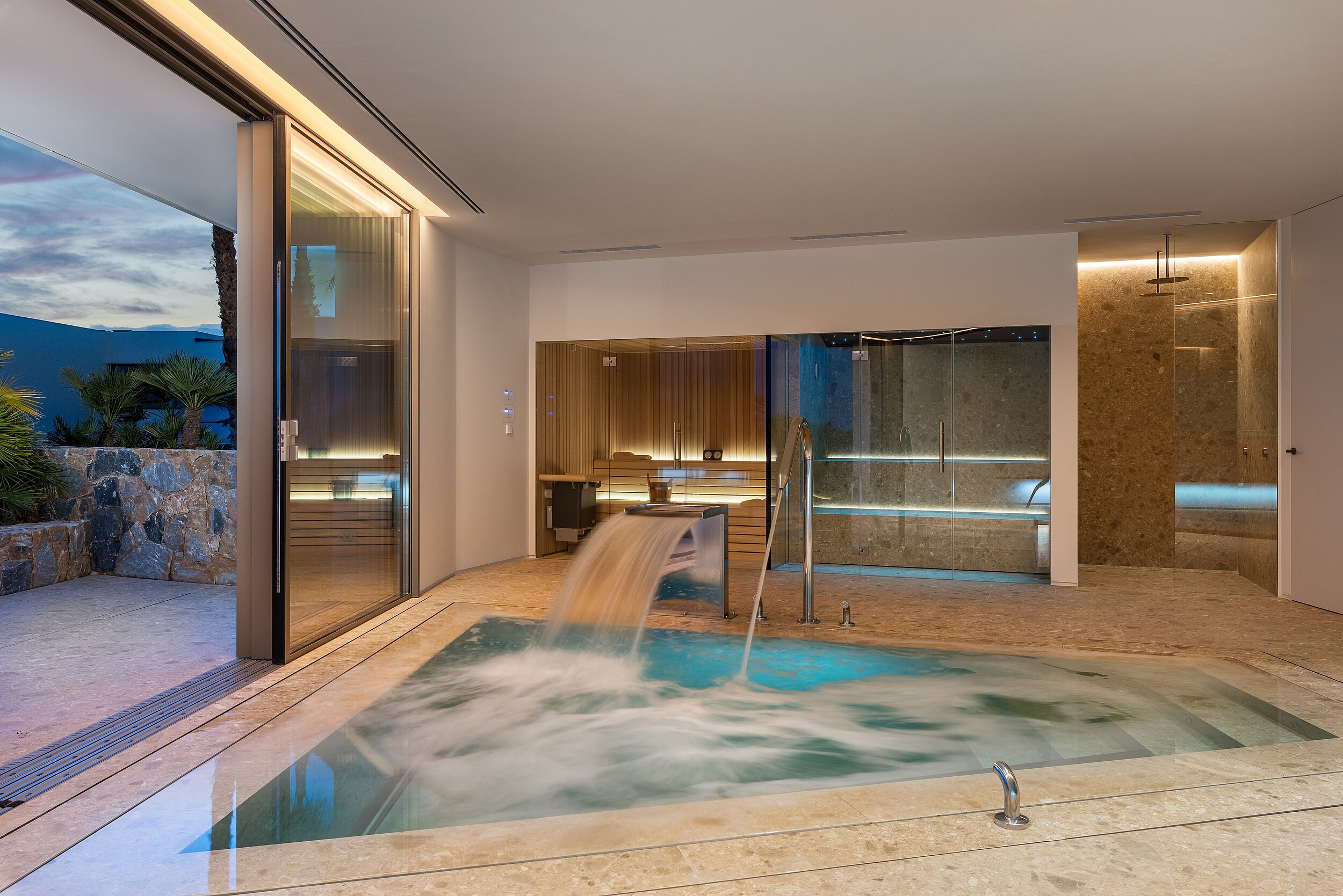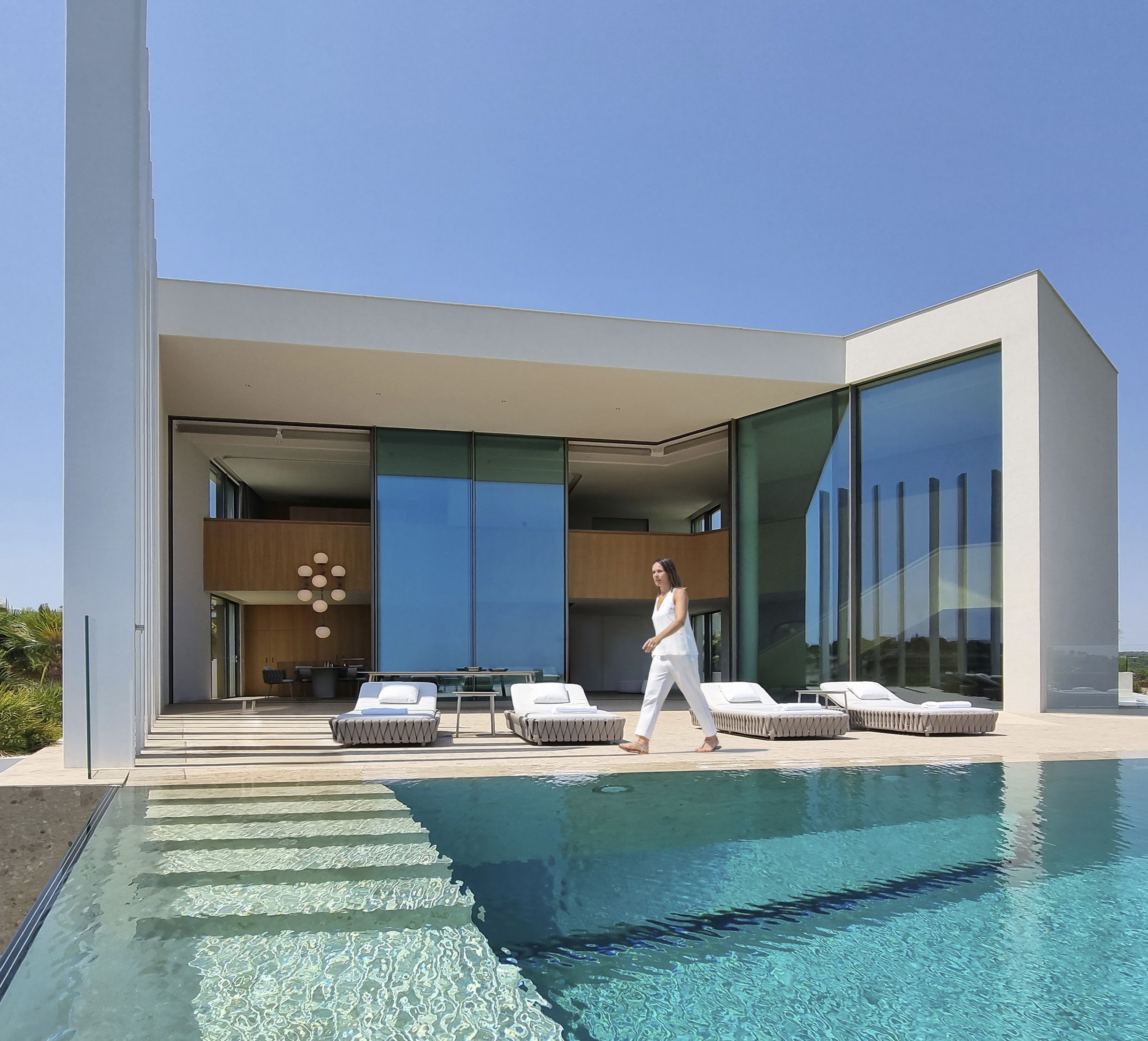 From the macro; building architecture and garden design, to the micro; paint on the walls, pool tiles, lighting, even the door-handles; every element has been hand-picked or hand-crafted by Monica Armani.