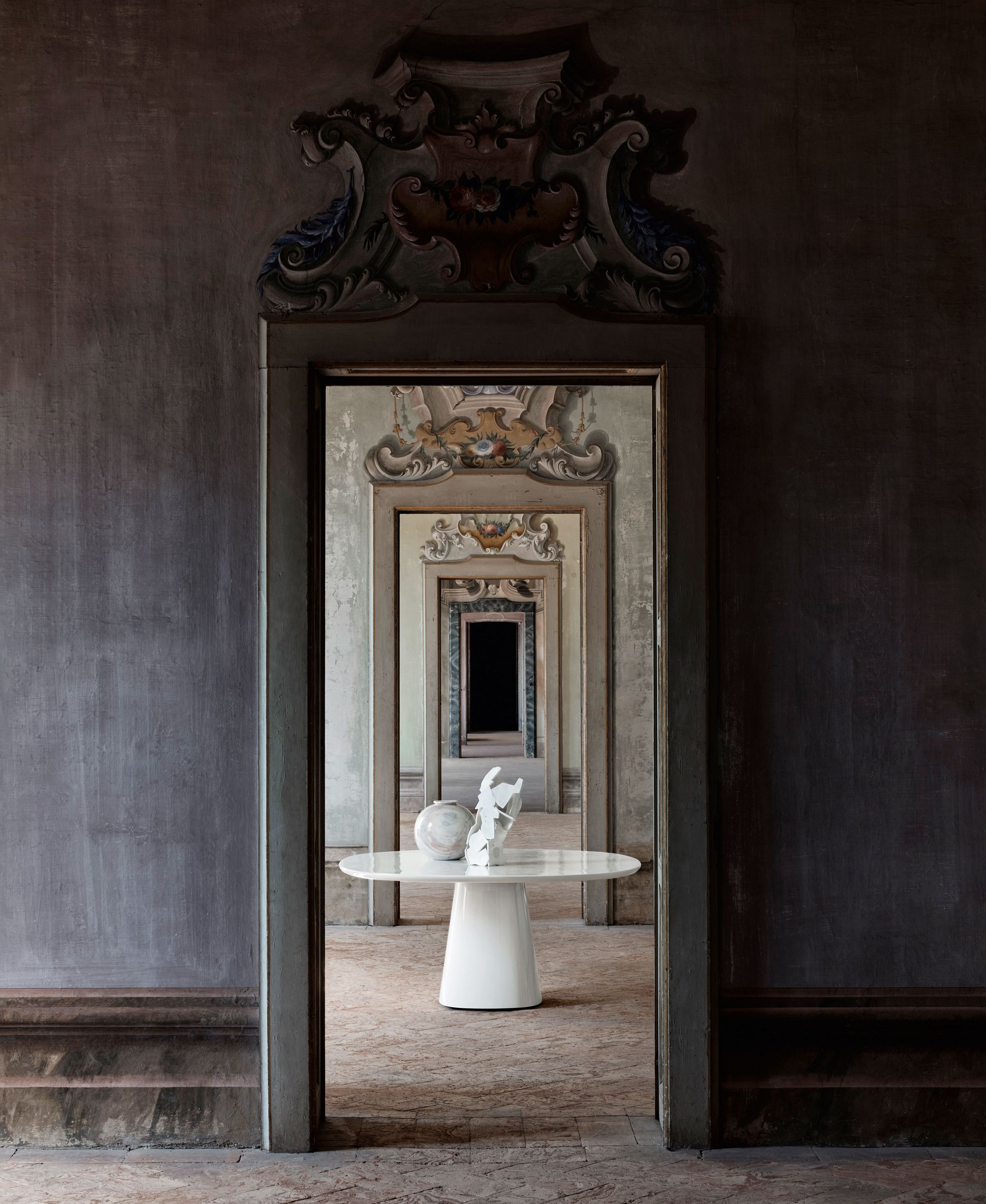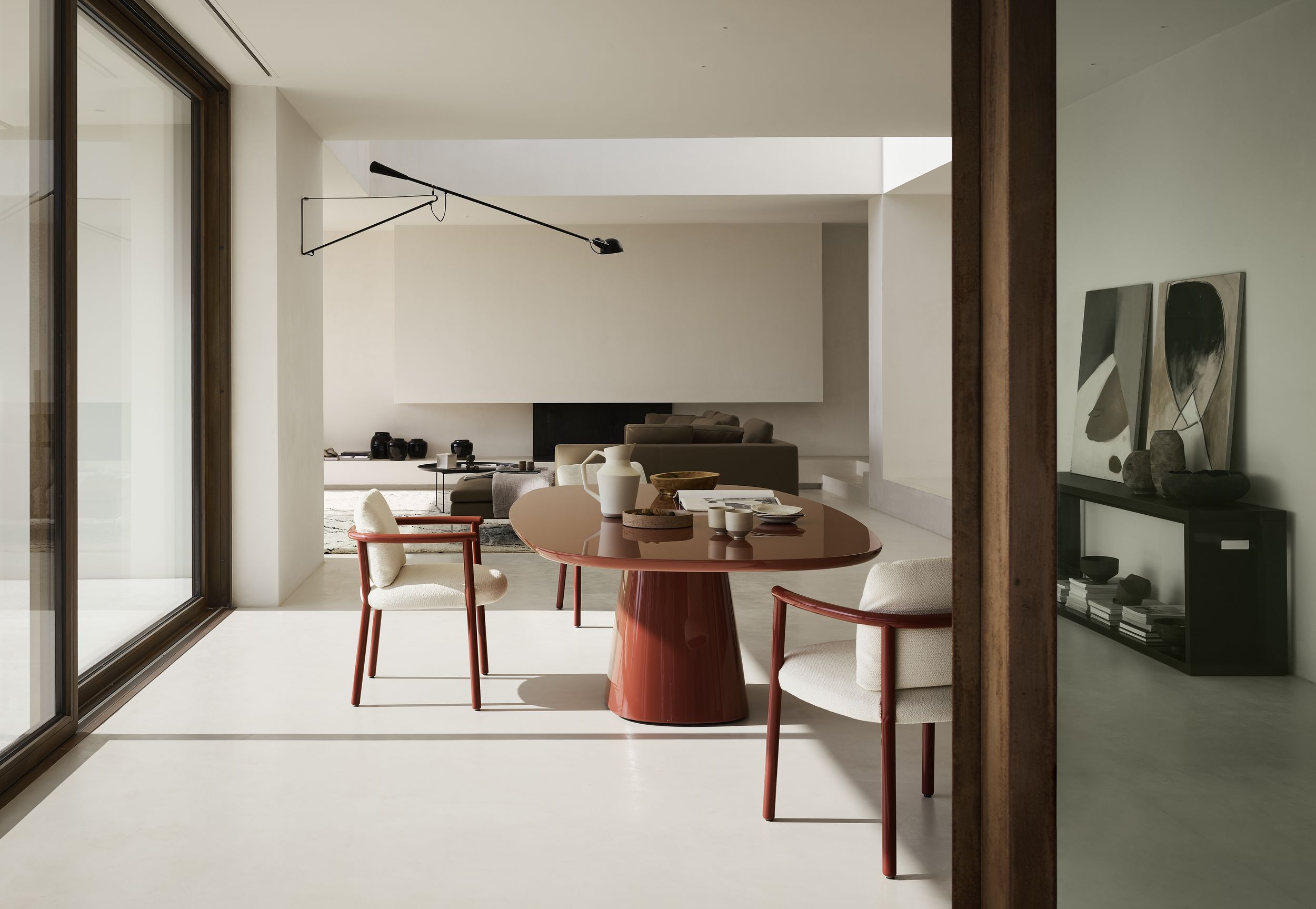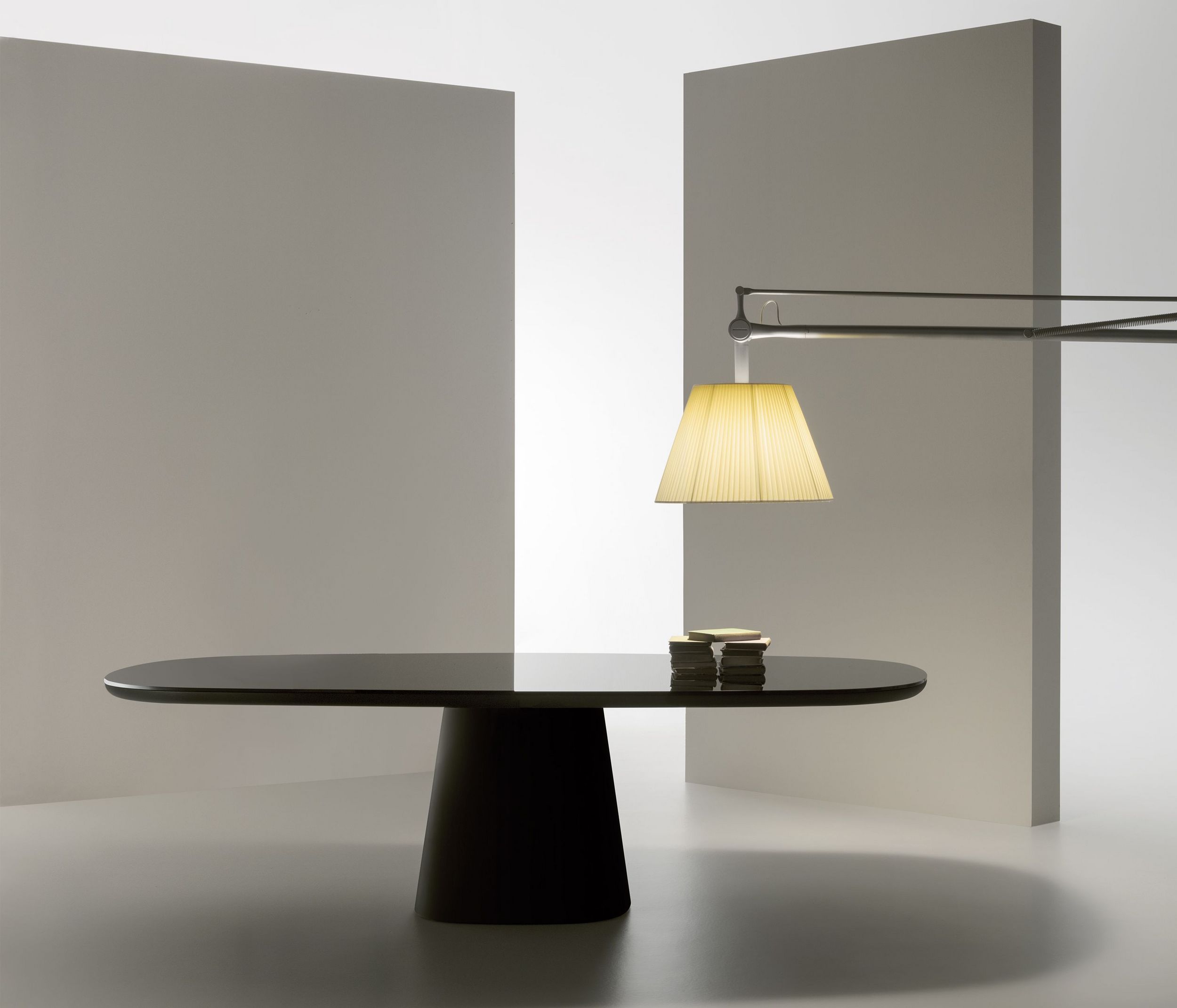 In an homage to Jackie O' and her glamourous and iconic style, Monica Armani drew inspiration from the shape of her dramatic sunglasses to create a dining table and complementary chair. Allure O' is a dining table of shapely lines, of curves in all the right places, of volume, scale and balance. It is a contemporary celebration of 60's style, unadorned sculpture and functional design. Powerful and serene, Allure O' gracefully floats on a perfectly proportioned tapered base. Available in two sizes, glossy or mat finishes, in a stunning array of colours, the table and base can be one solid colour or mixed and matched, and also can be enhanced with a slab of Carrara white marble, Marquina black marble, or black glass.