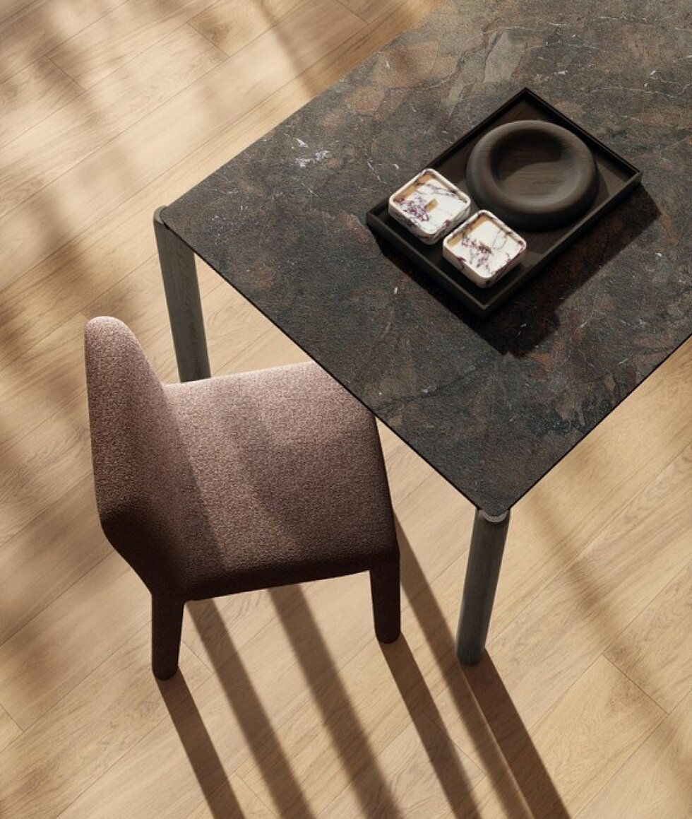 The Correr Slim collection of tables is distinguished by its generous yet elegant table leg design contrasted against its wafer-thin table top; a juxtaposition of strength and delicacy in design.